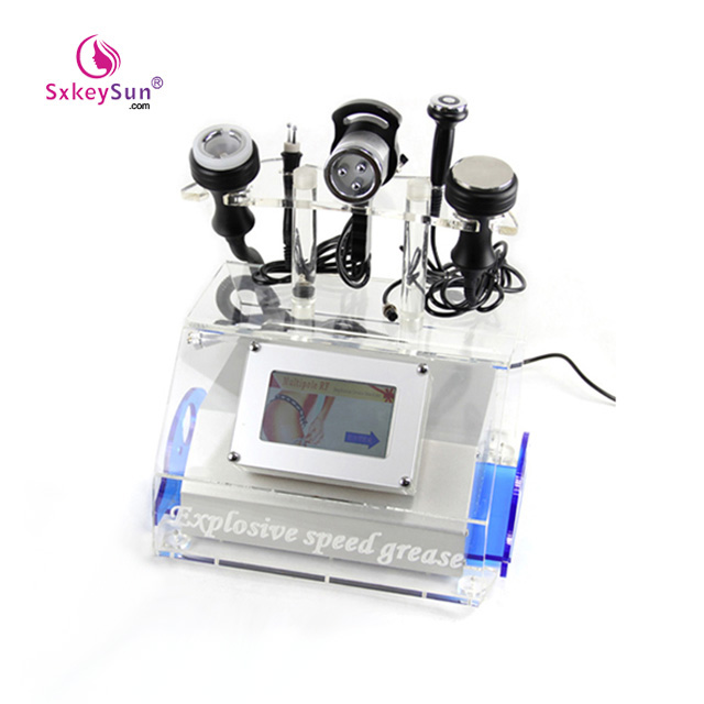 Cavitation radiofrequency machine with collective strong sound wave head, strong sound wave of 40000HZ is emitted to vibrate fat cells at top speed and produce numerous vacuum air pockets inside and outside the fat cells, robustly impact fat cells to generate introverted blast and disintegrate triglyceride into glycerol and free fatty acids. Then RF waves at frequency of 1M HZ is used for exhausting the integrated glycerol and free fatty acids through hepatoenteral circulation. Finally, vacuum RF and energy electrode are used for positioning and tightening fat. In physics, it is known as “cavitation”. Micropore introverted blast inside and outside cell will lead to enhanced molecular motion and a higher energy level and this will finally cause fat cell rupture and thereby achieve the effects of body building and losing weight.