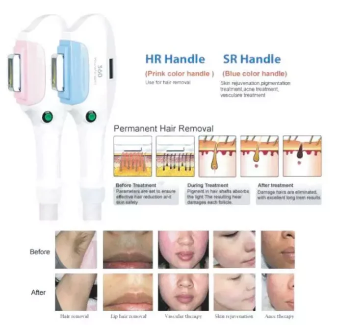 * The 532nm wavelength: get rid of freckles, eyebrow tattoo, failed eye line tattoo, tattoo , lips line, shallow red and brown pigment, telangiectasis and so on.