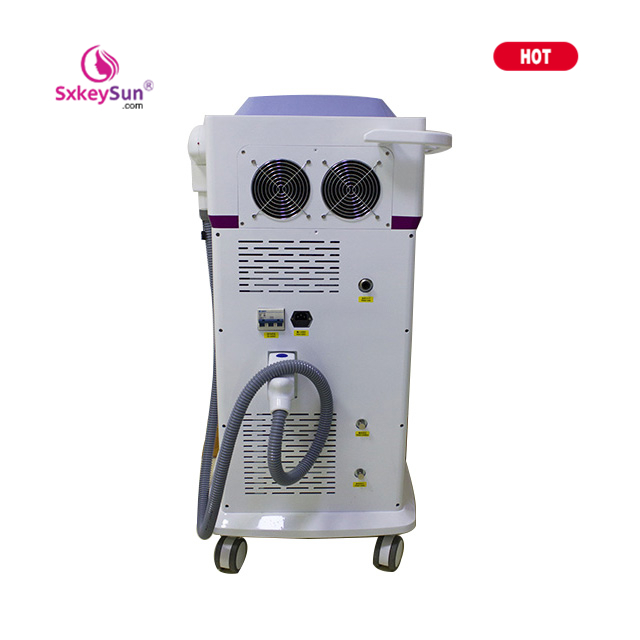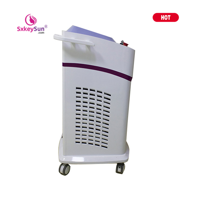 808nm Diode laser hair removal system used for hair removal and hair permanently reduce.This system can be used for all types of skin(Expected I-VI skin),including sunburn skin.Hair removal process based on the selective principle of field.The method including destroy hair regeneration mechanism,by moving the hair follicle temperature rise to a high enough to destroy the germainal cells,but will not damage skin and surrounding tissue.Refers to the division,germinal cell differentiation of the cells that make up the hair follicles.After the laser effect, consumed by phagocytes out these cells in vitro.808nm Diode laser hair removal system unique cooling technology,so that you can directly into the hair roots,laser cooling at the same time protect the skin surrounding tissue,improve the patient’s comfort.Diode laser uses 808nm wavelength is applicable to:remove unwanted hair,and the effect is stable,long-term or permanent.