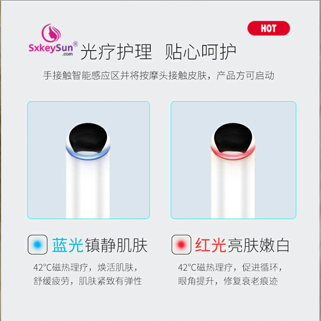 4,High-frequency vibration: It drives the skin to exercise, and uses the principle of negative ion introduction to effectively introduce skin care products to help skin care products absorb, so that eye problems can be better resolved.