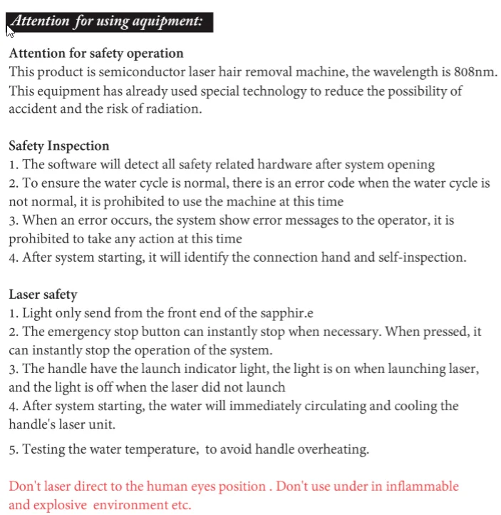 D. Germany original laser bar,can ensure the effect and the speed of the doctors.Humanized operation system make the machine easy and reasonable to use to different customers. That make sure the machine to be scientific.The light is gentle, good customer experience.
