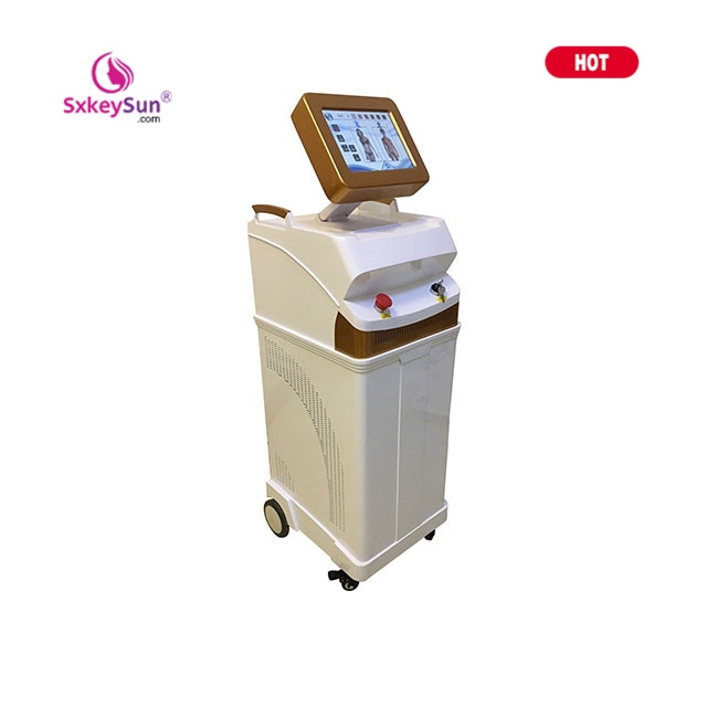 The system uses the best hair removal wavelength of the 808nm diode to penetrate deeply into the dermis of the hair follicle. During the course of treatment, a series of low-throughput, high-repetitive pulses increased the temperature of the hair follicles and surrounding nourishing tissue to 45 degrees Celsius. This together with the heat absorbed directly by the hair follicles damage the hair follicles and prevent re-growth, and 808nm diode laser machine is particularly effective for hair follicle melanocytes, no damage to the surrounding tissue. Can achieve the purpose of permanent hair removal.