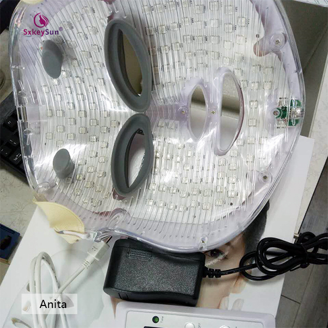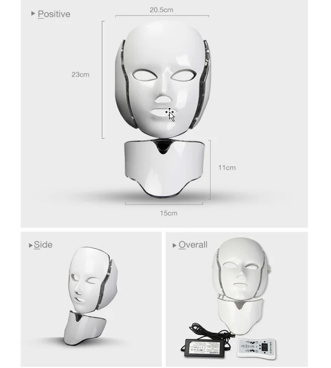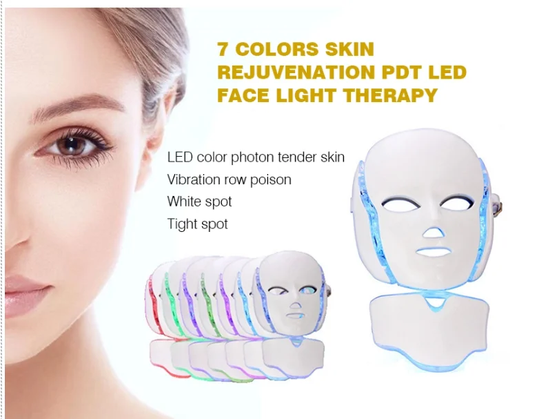 PDT LED face light therapy mask, designed for facial beautification, uses natural light waves, which are transmitted by LEDs into the skin. The light activates photoreceptors in skin cells, producing energy for absorption by skin components, to beautify your complexion.