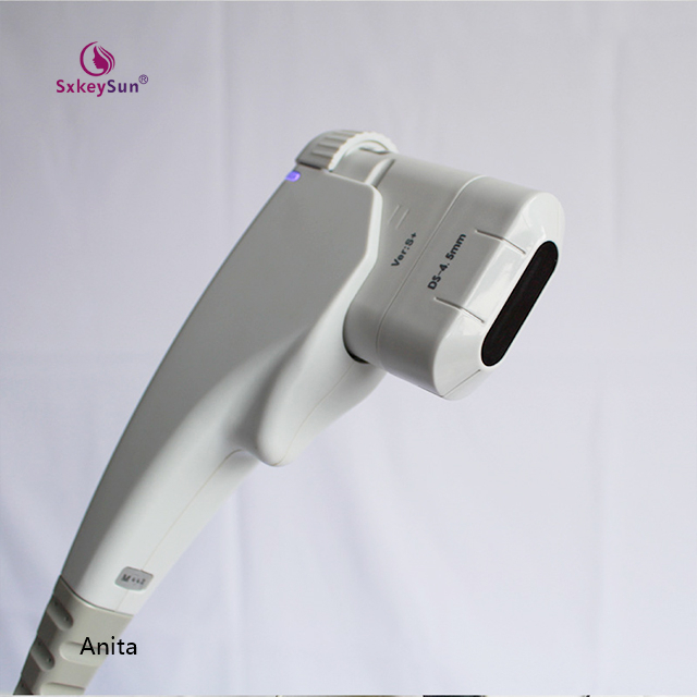 DS-4.5 4MHZ frequency used to transmit high- energy focused ultrasound to the skin, subcutaneous tissue, the ultrasound to penetrate the skin to a depth of 4.5mm, direct subcutaneous SMAS layer, forming “heat coagulation” regional, targeted to thicker skin, such as cheeks, etc.