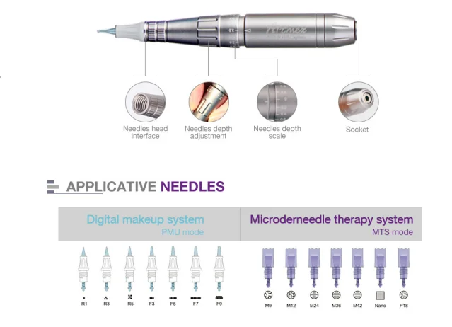-Specially tailored needles for P.M.U, steady movement wih no shaking.