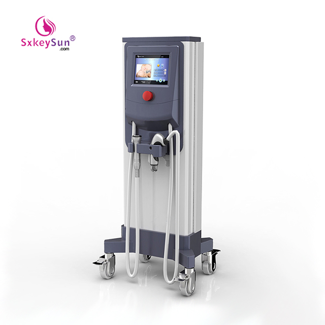 Specially designed fractional RF matrix, applied to Superficial Fractional RF System, controlled by digital motor, can orderly penetrate epidermis and dermis to accurately arrive the controlled skin depth, and strongly stimulate collagen and elastic tissues without any burning damages to the epidermal layer. The RF energy can well penetrate into the dermis layer, stimulate regeneration of collagen, soften, contract and decompose local fat tissues, so as to achieve long-term effects of skin lifting, wrinkle removal and scars improvement